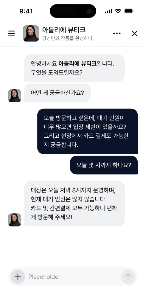설정하기도 어렵고, 고객이 묻는 질문에 단답만 돌려주는 챗봇이 아닌, 예약과 방문을 유도합니다.